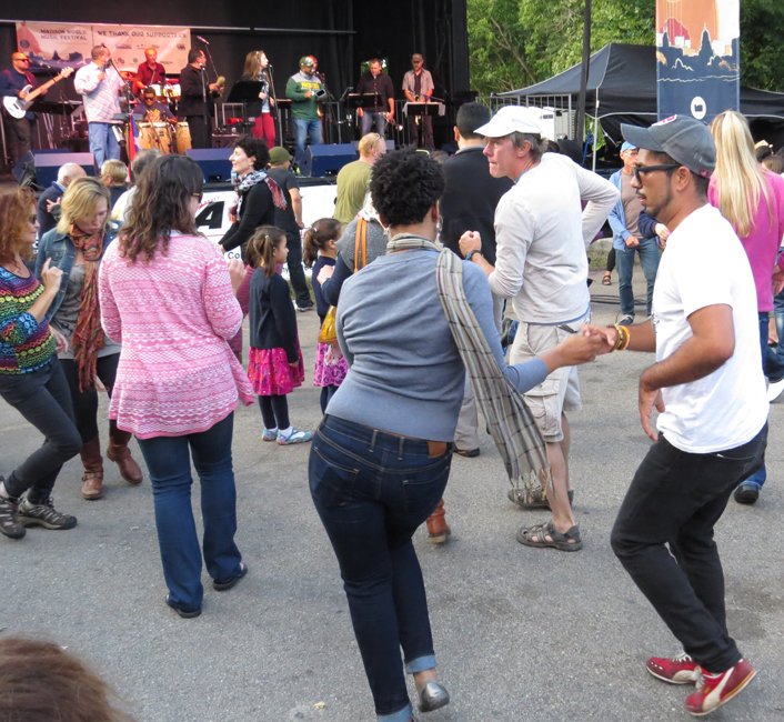 Three marching bands at the beginning, middle and end, punctuated appearances by the familiar: stilt walkers, Hoopelation, the circus wheel and the Forward Marching Band; along with new entrants like the Madison Circus Space and the Mustache Beard Wearers Union: Local 608.