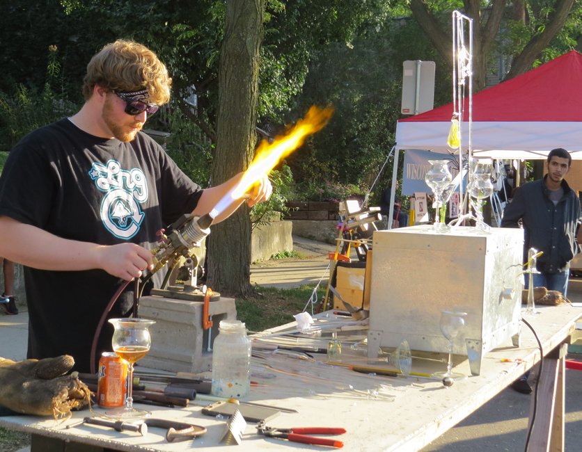 Down on Willy Street the thoroughfare filled quickly as temperatures in the middle 60s and possibly a late-afternoon Green Bay Packer kickoff brought people out early. Over 150 vendors filled the curb spaces and the larger presence was notable. The food offerings were diverse and plentiful but the retail booths did not break much new ground.